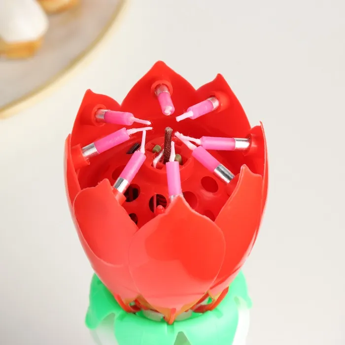 Свеча для торта музыкальная «Тюльпан», крутящаяся, красная, 14.5×6 см — Характеристики
