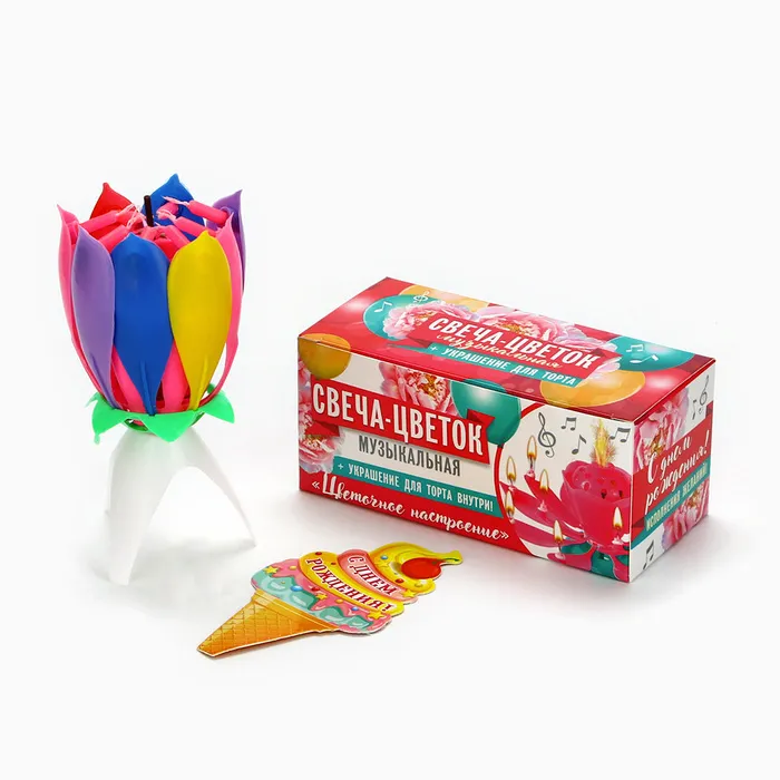 Свеча для торта музыкальная «Тюльпан», разноцветная — Характеристики