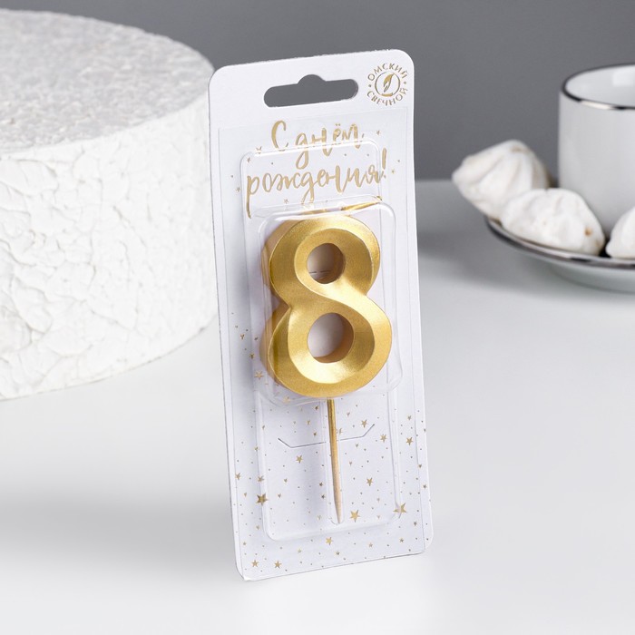 Свеча для торта на шпажке «Грань», 5.5 см, цифра 8, золотая — Характеристики