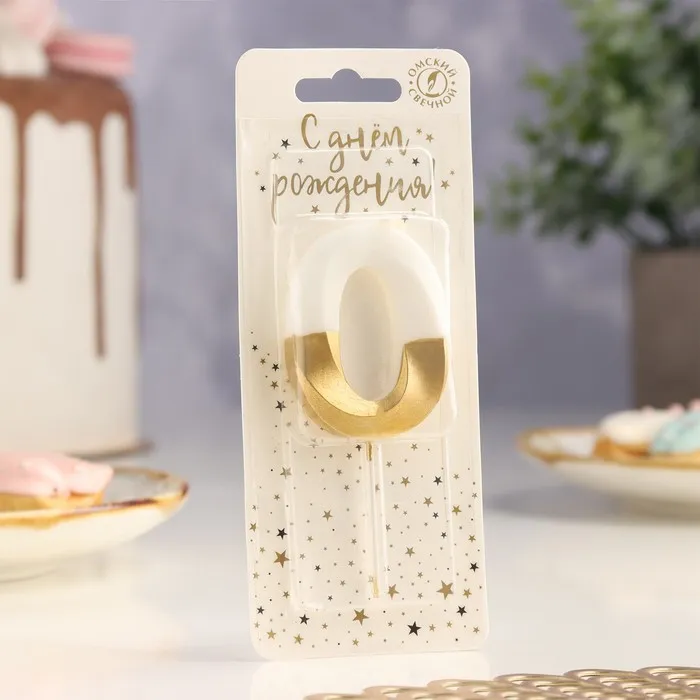 Свеча для торта на шпажке «Грань», цифра 0, 5.5 см, бело-золотая — Характеристики