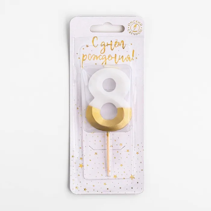 Свеча для торта на шпажке «Грань», цифра 8, 5.5 см, бело-золотая — Характеристики