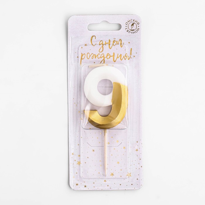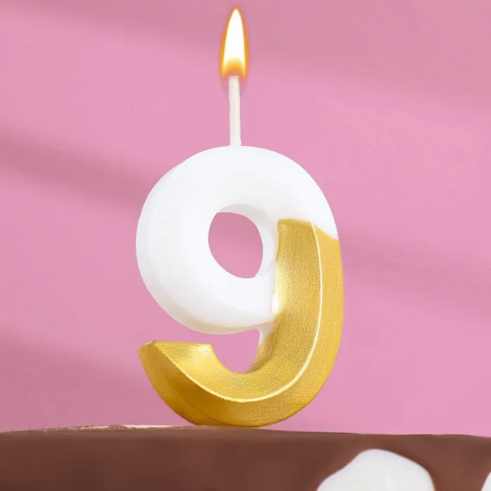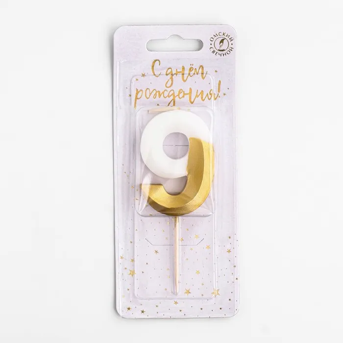 Свеча для торта на шпажке «Грань», цифра 9, 5.5 см, бело-золотая — Характеристики