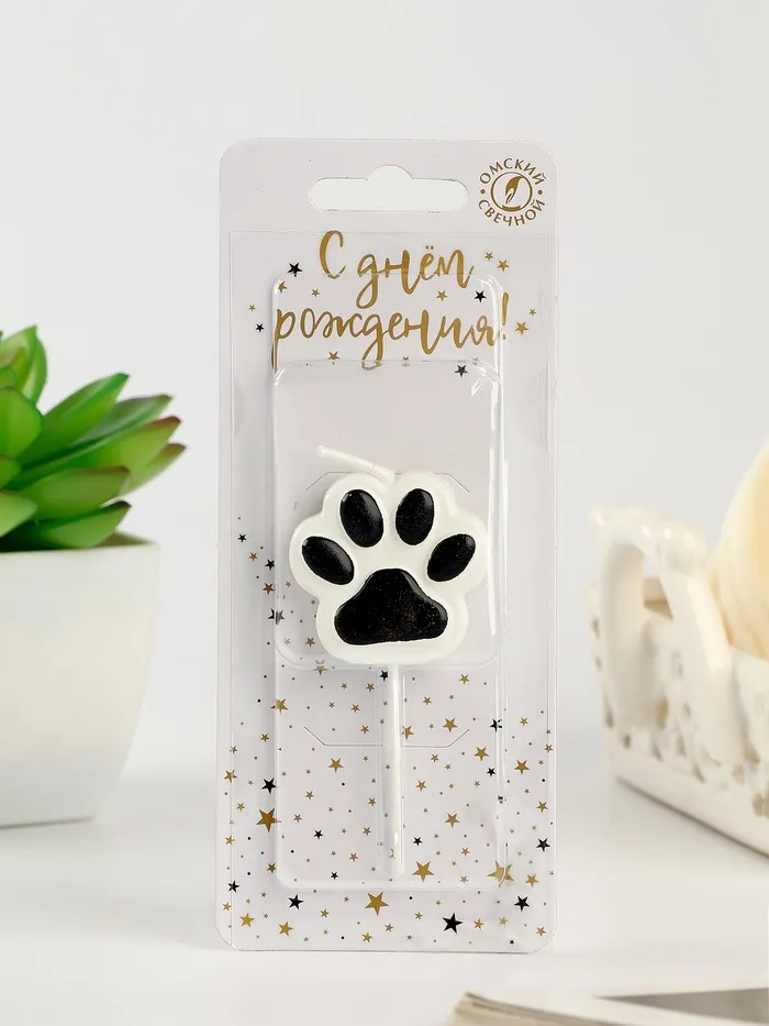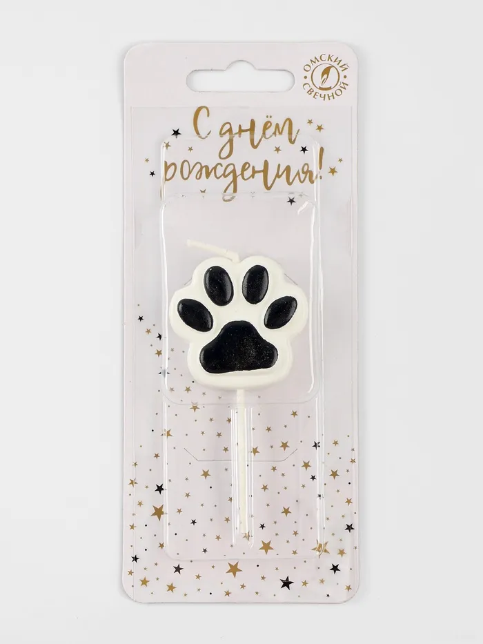Свеча для торта на шпажке «Лапка - сквиш», бело-черная — Характеристики