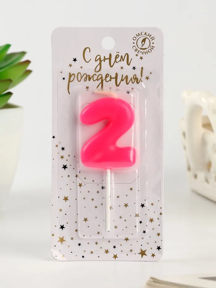 Свеча для торта «Неоновая», цифра 2, розовая — Характеристики