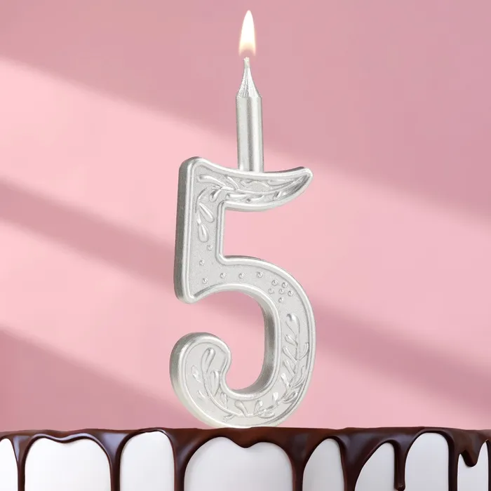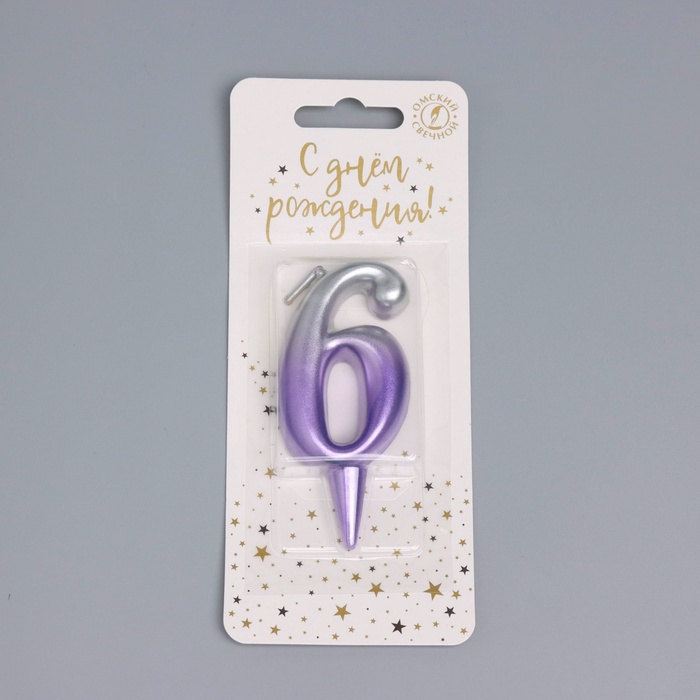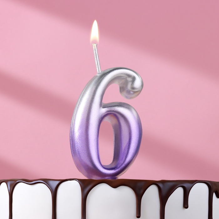 Свеча для торта «Овал», цифра 6, 5.5 см, серебро-сирень — Характеристики