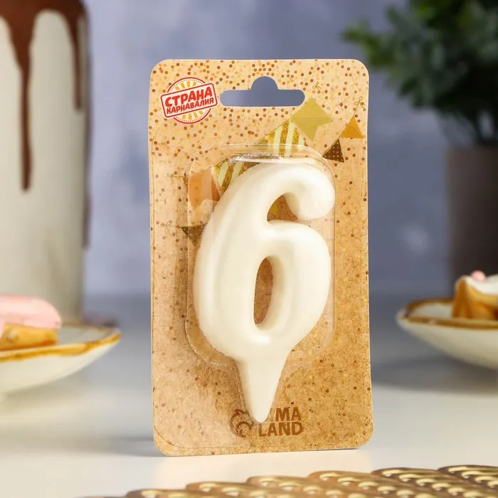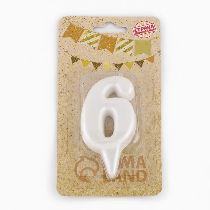 Свеча для торта «Овал» цифра 6, большая, жемчужный, 5.5 см — Характеристики