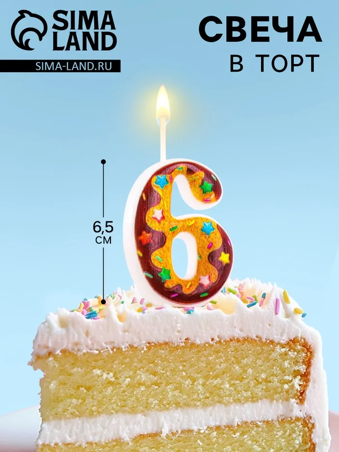Свеча для торта «Печенье с шоколадной глазурью», цифра 6, 5.5 см — Характеристики