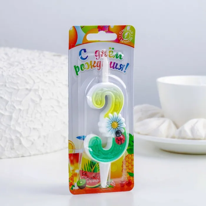 Свеча для торта «Ромашки», 10.2 см, разноцветная цифра 3 — Характеристики