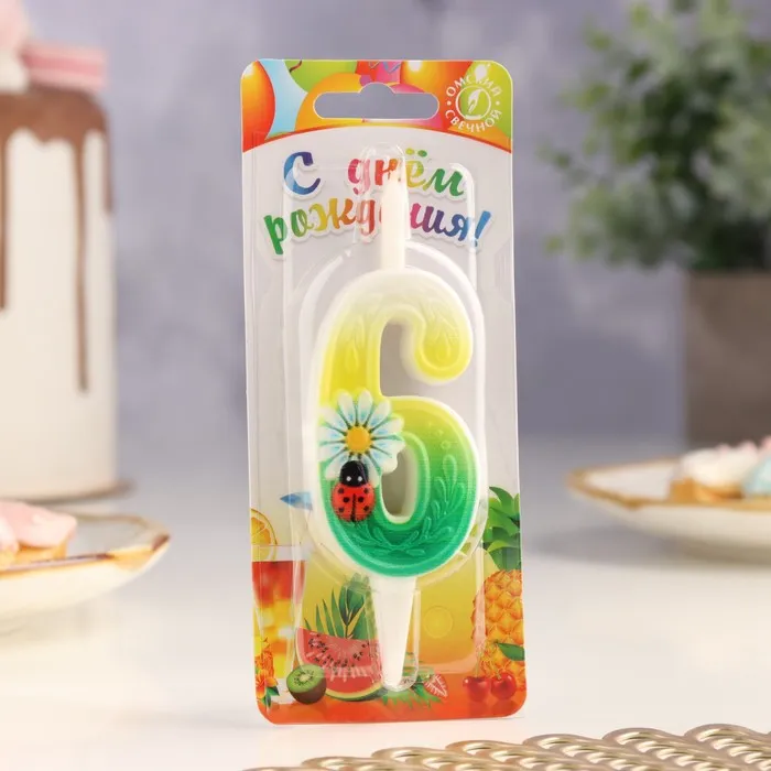Свеча для торта «Ромашки», 10.2 см, разноцветная цифра 6 — Характеристики