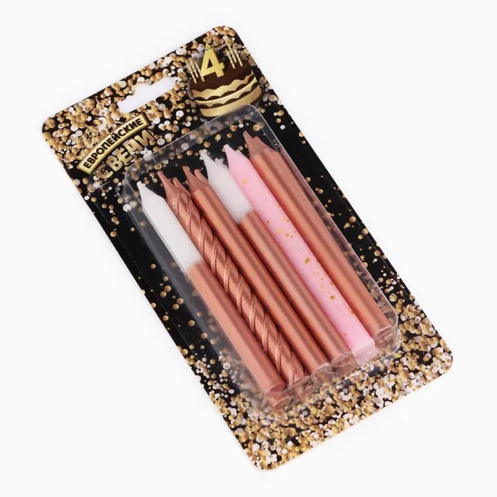 Свеча для торта «Розовая вечеринка», 12 шт., 8 см, белый и розовый металлик — Характеристики