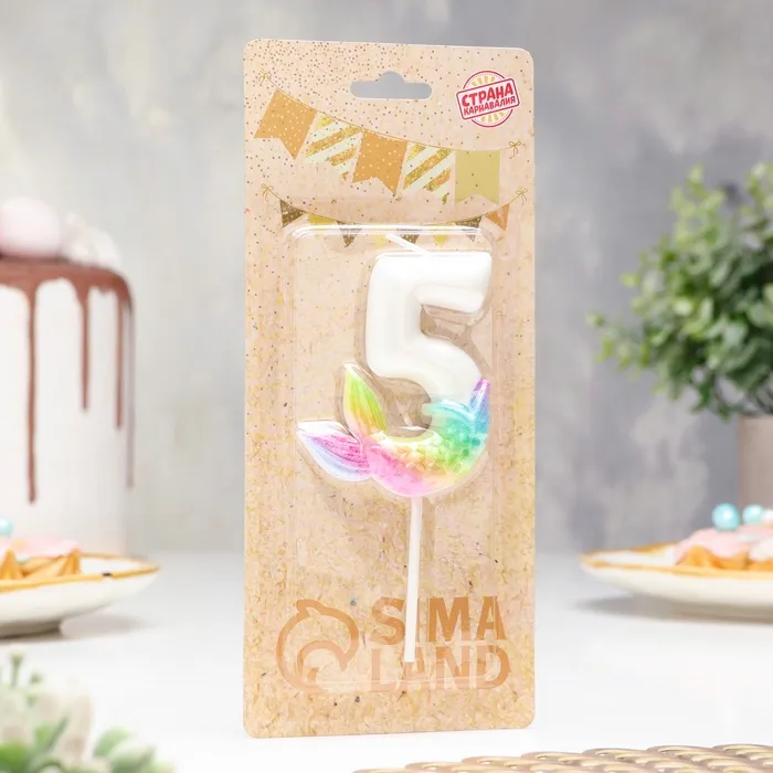 Свеча для торта «Рыбка исполения желаний», цифра 5, белая — Характеристики
