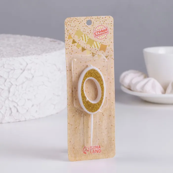 Свеча для торта с блестками «Цифра 0», золотая, 5.2 см — Характеристики