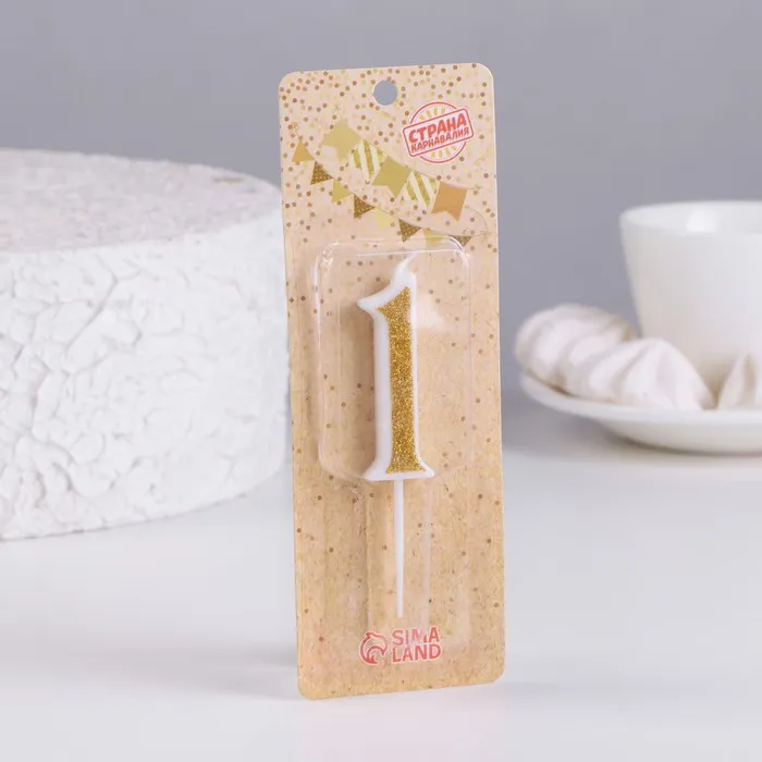 Свеча для торта с блестками «Цифра 1», золотая, 5.2 см — Характеристики