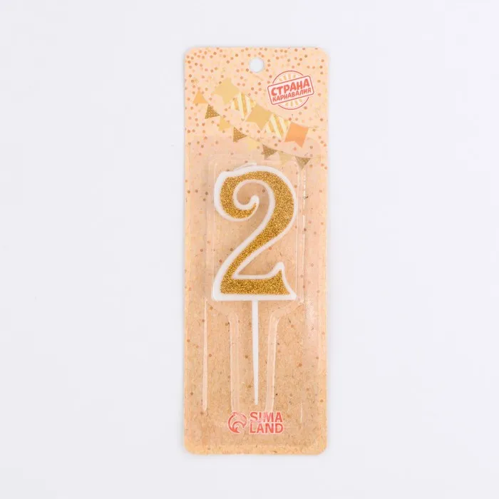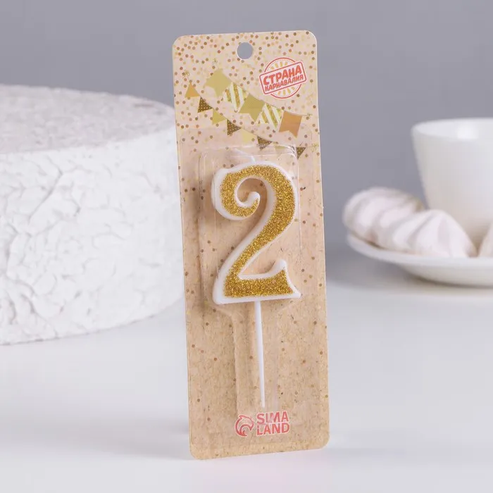Свеча для торта с блестками «Цифра 2», золотая, 5.2 см — Характеристики