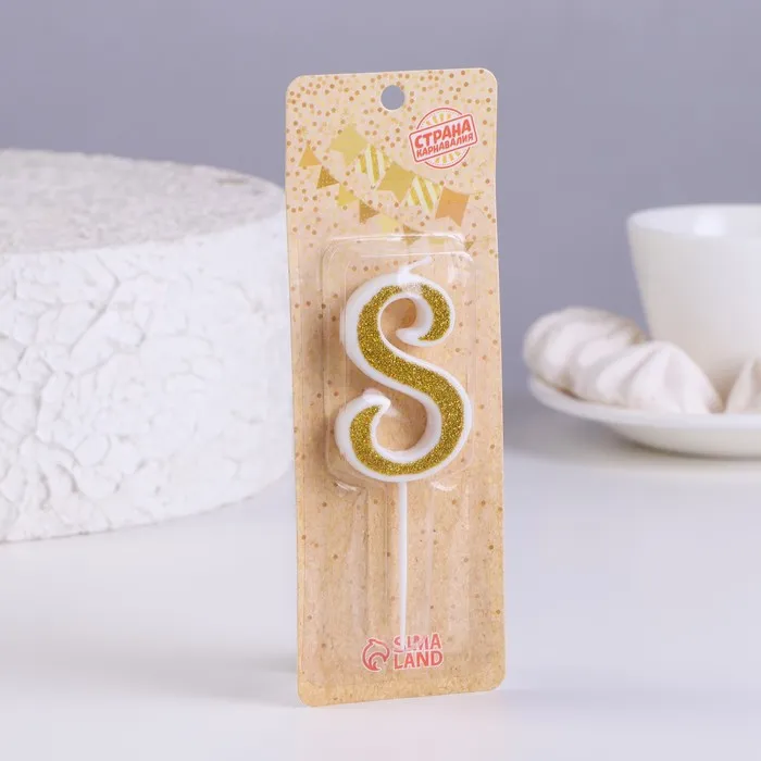Свеча для торта с блестками «Цифра 8», золотая, 5.2 см — Характеристики