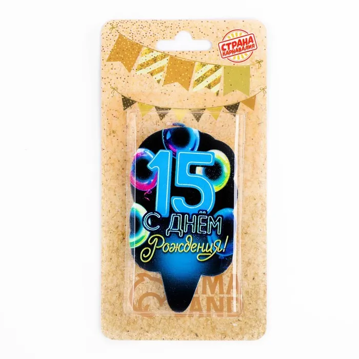 Свеча для торта «С Днем рождения», 15 лет, шары, 6.5 см — Характеристики