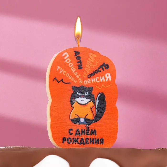 Свеча для торта «С днем рождения», 6.5 см, коричневая — Характеристики