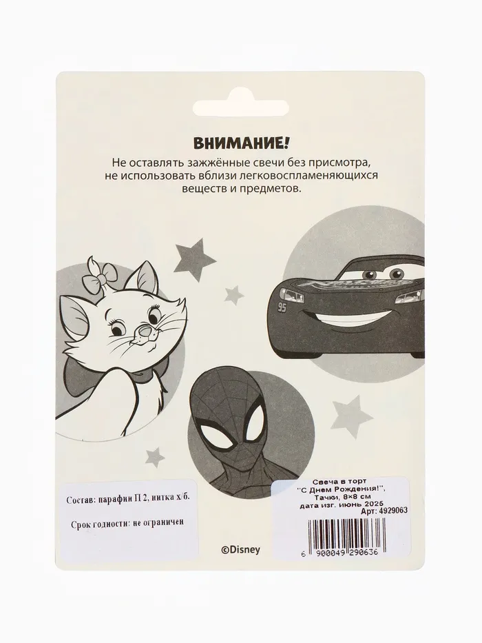 Свеча для торта "С Днем Рождения!", 8 х 8 см, Тачки — Характеристики
