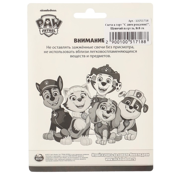 Свеча для торта «С Днем Рождения!», 8×8 см, Щенячий патруль — Характеристики
