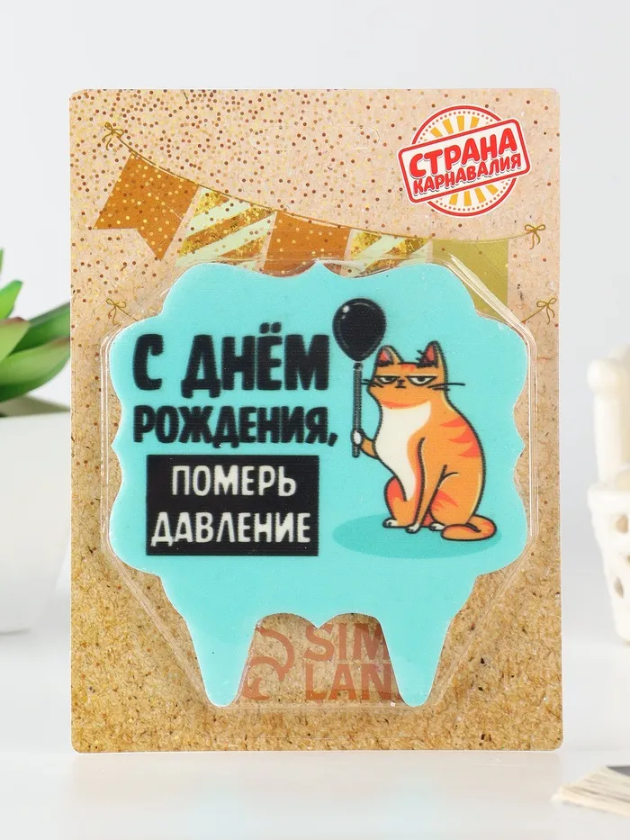 Свеча для торта «С днем рождения, померь давление», 8 см, голубая — Характеристики