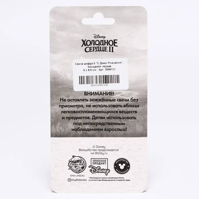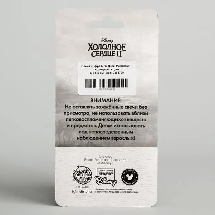Свеча для торта "С Днем Рождения", цифра 5, Холодное сердце — Характеристики