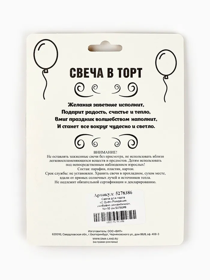 Свеча для торта «С Днём Рождения», 8 см — Характеристики