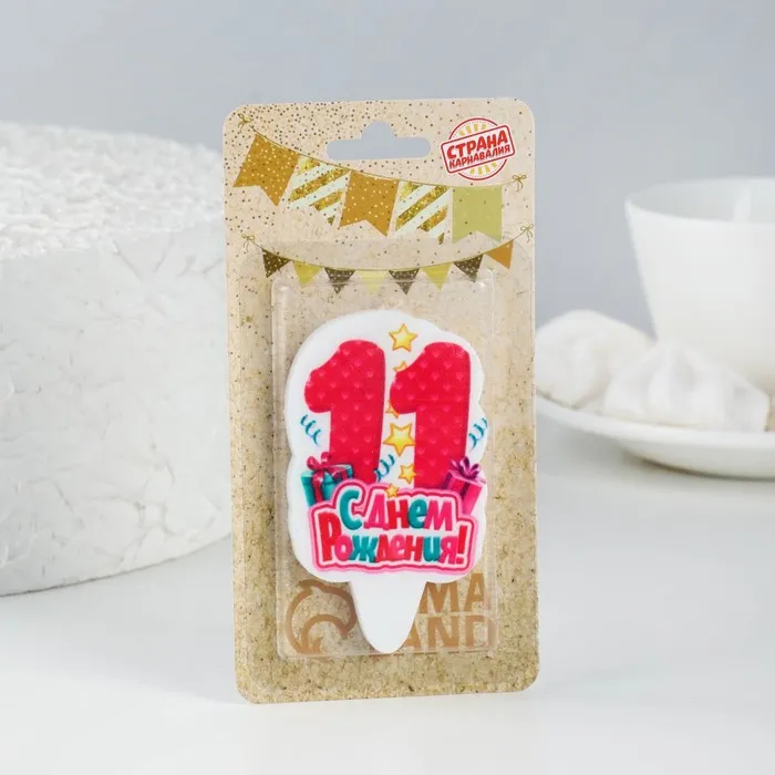 Свеча для торта «С Днём Рождения, цифра 11», розовая, 6.5 см — Характеристики