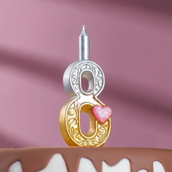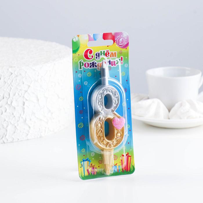Свеча для торта «Сердечки» серебряно-золотая, 10.2 см, цифра 8 — Характеристики