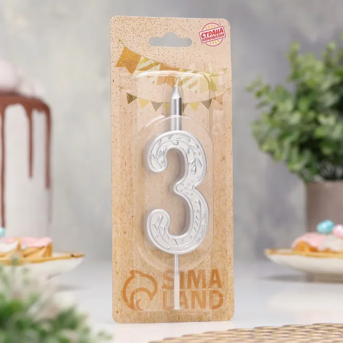 Свеча для торта «Серебряный узор», цифра 3 — Характеристики
