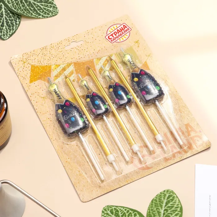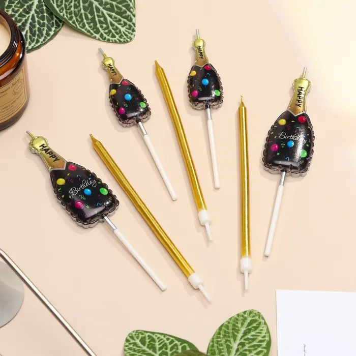 Свеча для торта «Шампанское», 7 шт., черный, золотой — Характеристики