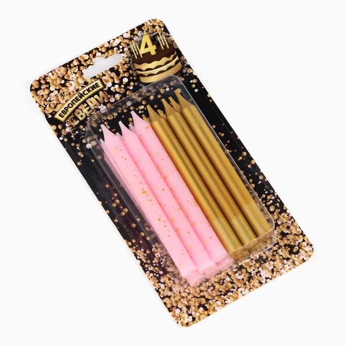 Свеча для торта «Спарк», 12 шт., 8 см, розовый и золотой металлик — Характеристики