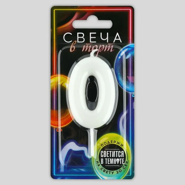 Свеча для торта, цифра «0», светится в темноте, 3,8 х 8 см