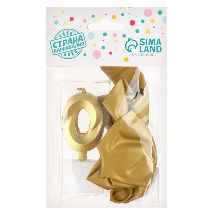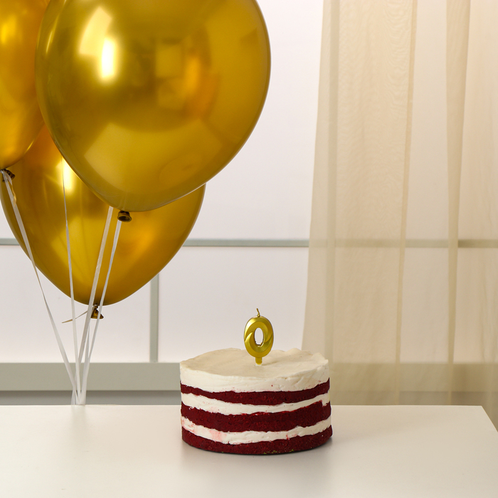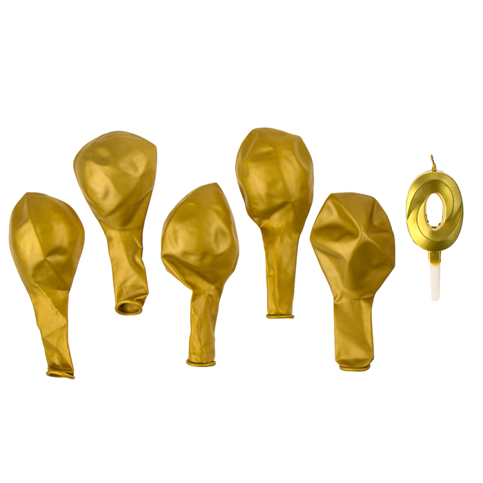 Свеча для торта, цифра 0 + воздушные шары, 5 шт, золото