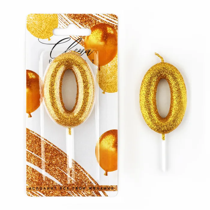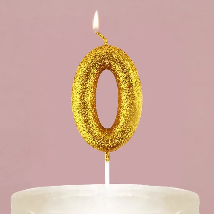 Свеча для торта, цифра, «0»,золото, х 10 см