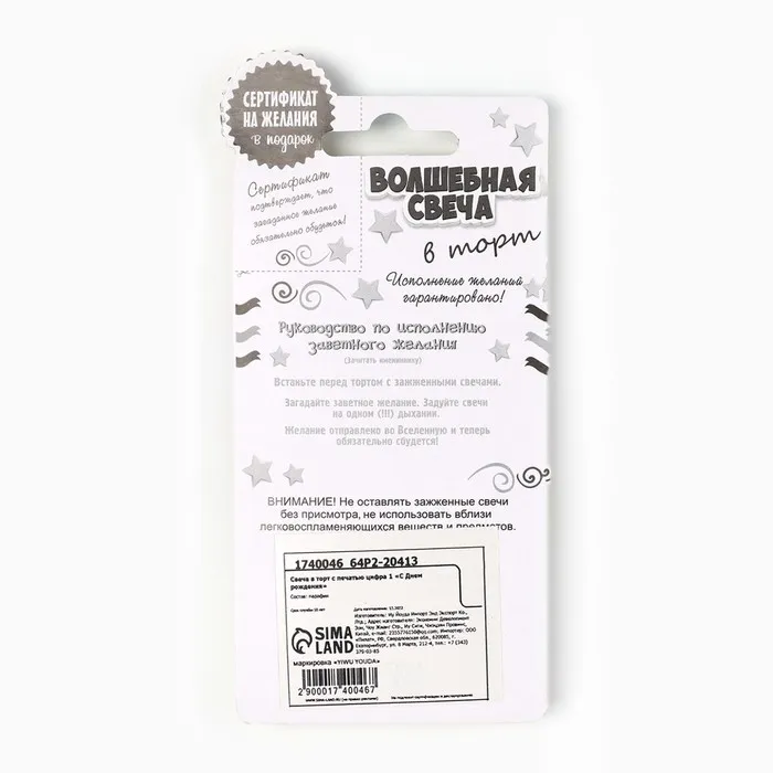 Свечи для торта на День рождения - неотъемлемая часть праздника. Украсьте угощение свечами, чтобы сделать особенный день в году ещё более ярким и незабываемым. Ведь задувание свечей вызывает бурные эмоции и у взрослых, и у детей, потому что в любом возрасте мы все мечтаем об исполнении желаний и для всех нас это один из самых трогательных и волшебных моментов. Яркие свечи украсят праздничный стол и создадут нужную атмосферу. Изготовлены из высокоочищенного пищевого парафина, который не влияет на вкусовые качества блюд, а удобная упаковка помогает сохранять свечи при длительном хранении и транспортировке.