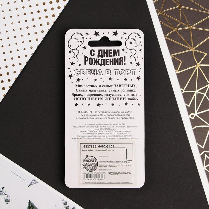 Свеча для торта, цифра «1», шампань, 3 х 6 см — Характеристики