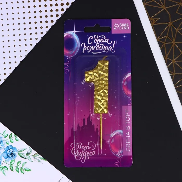 Свеча для торта, цифра «1», золотая, 10 х 2,8 см — Характеристики