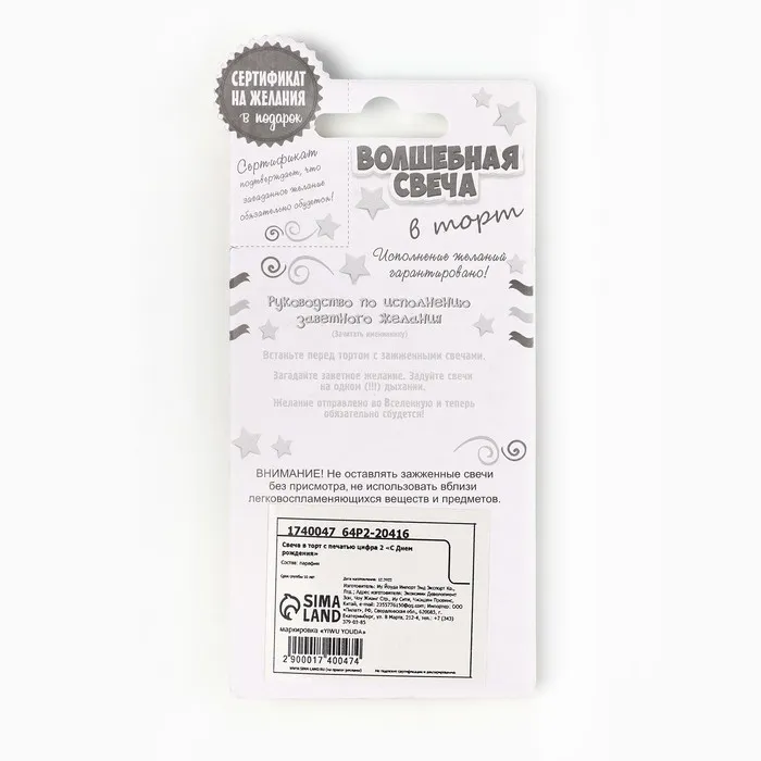 Свечи для торта на День рождения - неотъемлемая часть праздника. Украсьте угощение свечами, чтобы сделать особенный день в году ещё более ярким и незабываемым. Ведь задувание свечей вызывает бурные эмоции и у взрослых, и у детей, потому что в любом возрасте мы все мечтаем об исполнении желаний и для всех нас это один из самых трогательных и волшебных моментов. Яркие свечи украсят праздничный стол и создадут нужную атмосферу. Изготовлены из высокоочищенного пищевого парафина, который не влияет на вкусовые качества блюд, а удобная упаковка помогает сохранять свечи при длительном хранении и транспортировке.