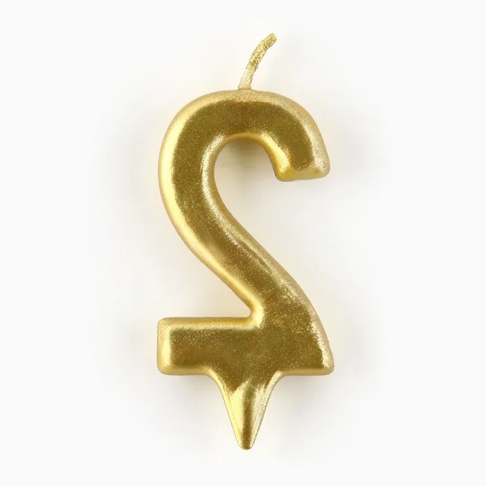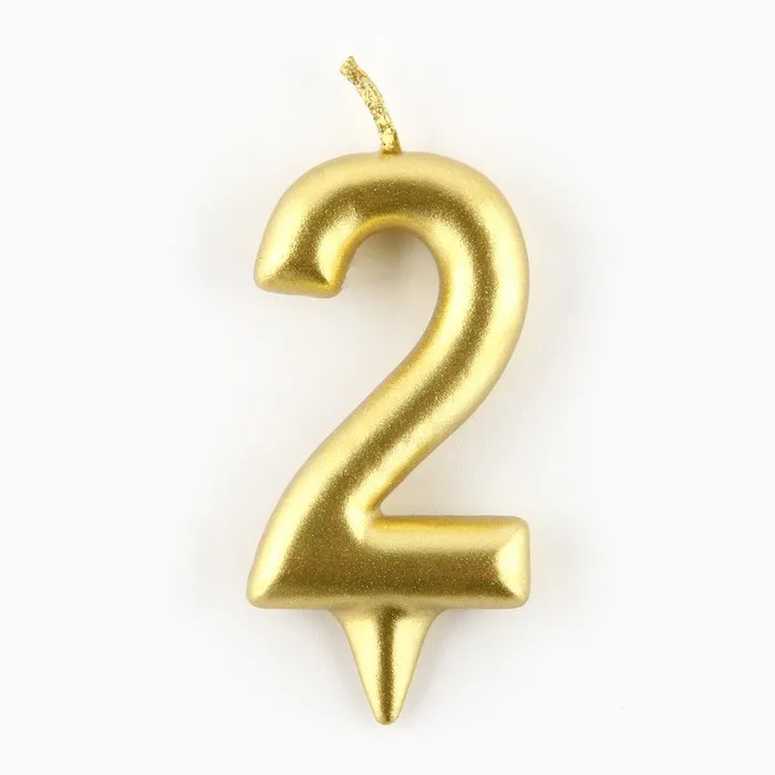 Свеча для торта, цифра «2», золото, 3 х 6 см
