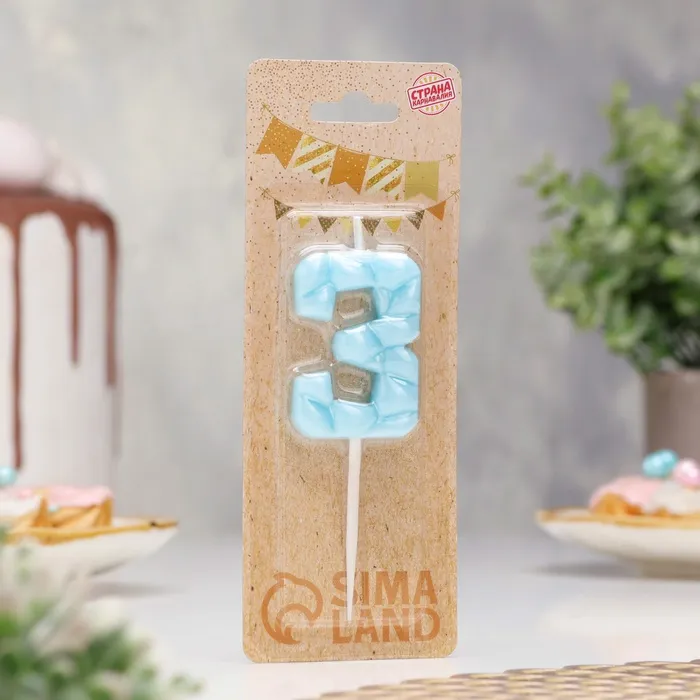 Свеча для торта «Цифра 3», голубая — Характеристики