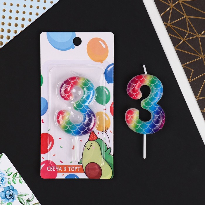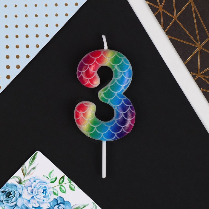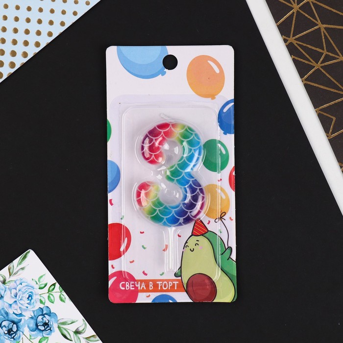 Свеча для торта, цифра «3», разноцветная, 5,5 х 8 см.