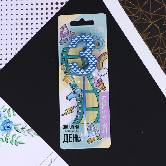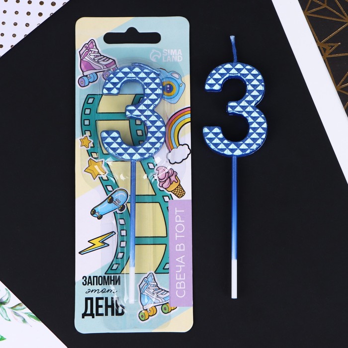 Свеча для торта, цифра «3», синяя, 4 х 13 см — Характеристики