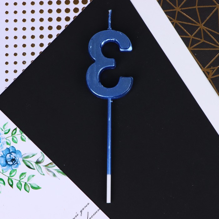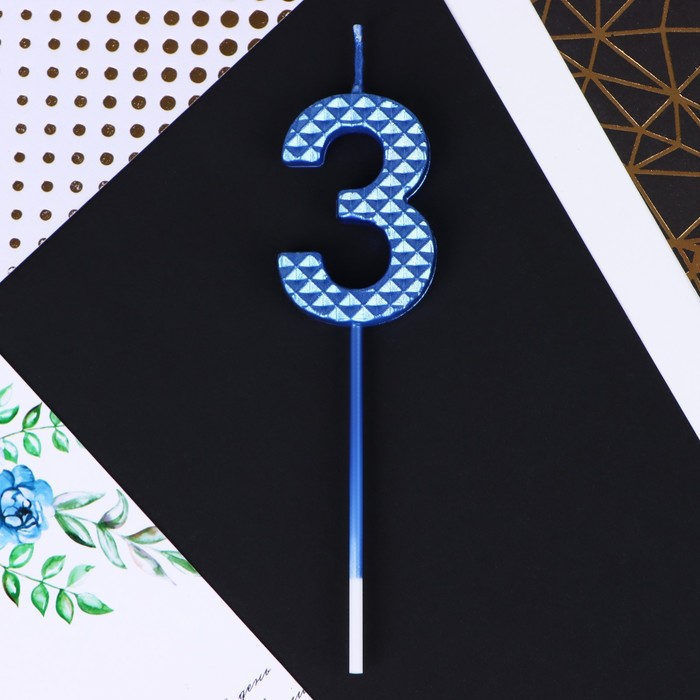 Свеча для торта, цифра «3», синяя, 4 х 13 см