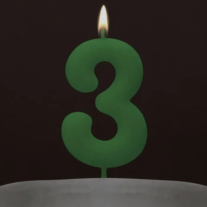 Свеча для торта, цифра «3», светится в темноте, 3,8 х 8 см