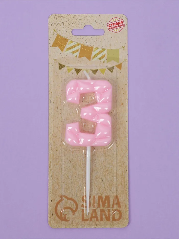 Свеча для торта «Цифра 3», светло-розовая — Характеристики