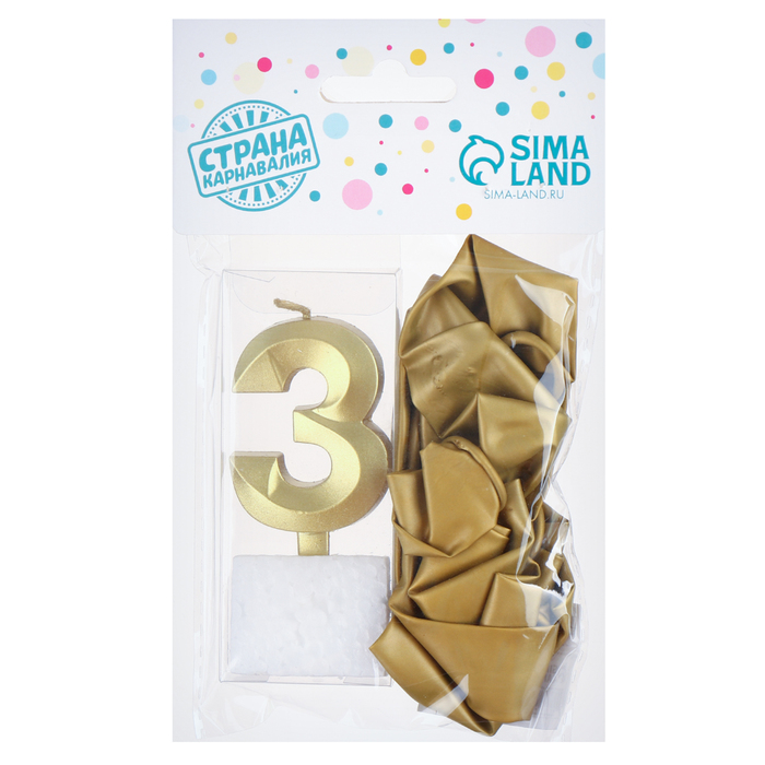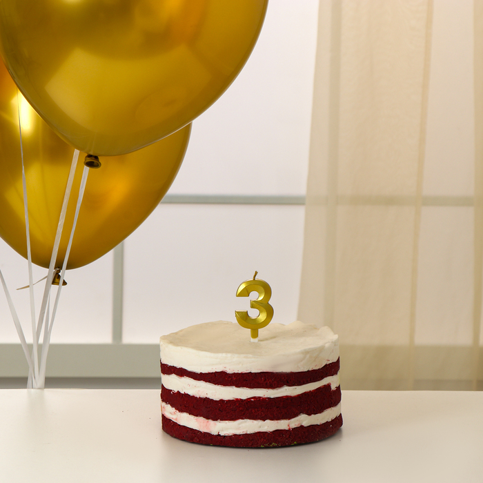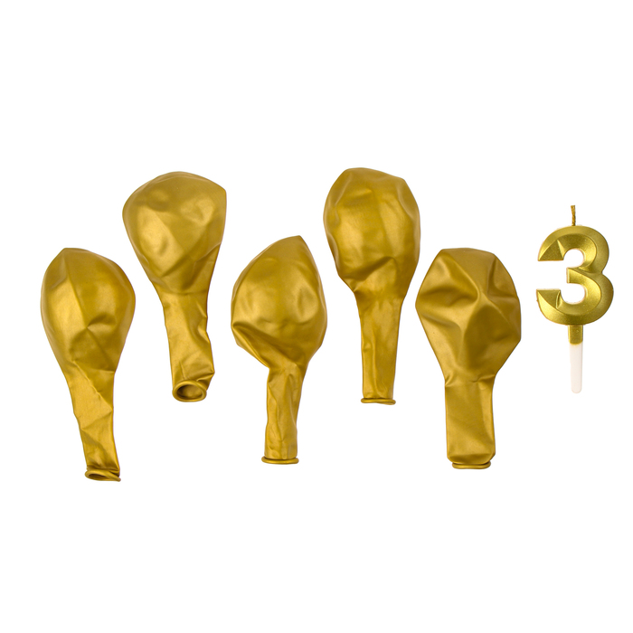 Свеча для торта, цифра 3 + воздушные шары, 5 шт, золото