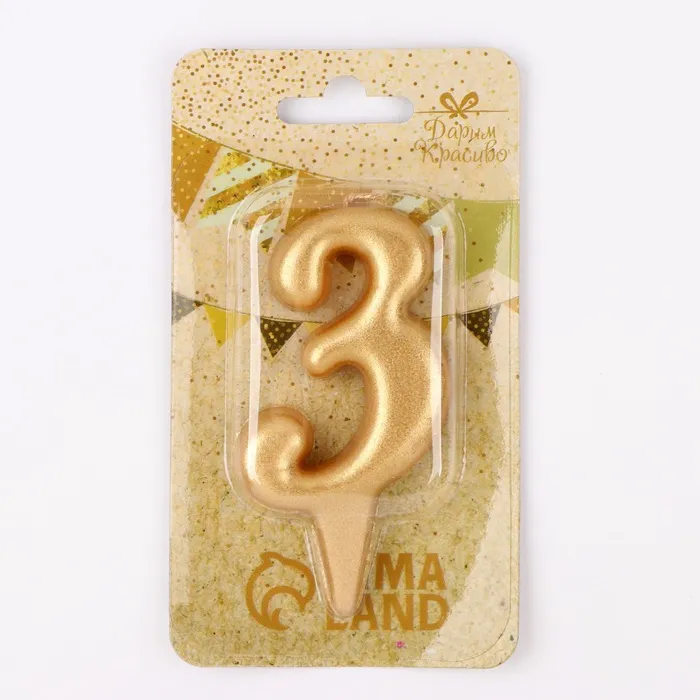 Свеча для торта «Цифра 3», золотая, 5.5 см — Характеристики