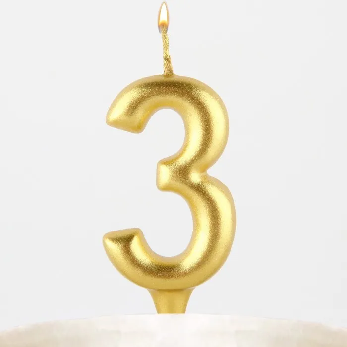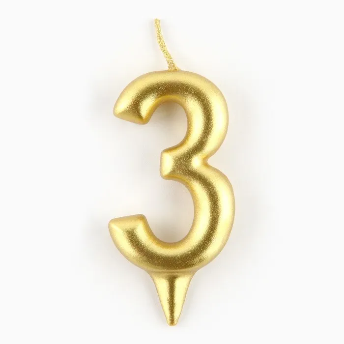 Свеча для торта, цифра «3», золото, 3 х 6 см