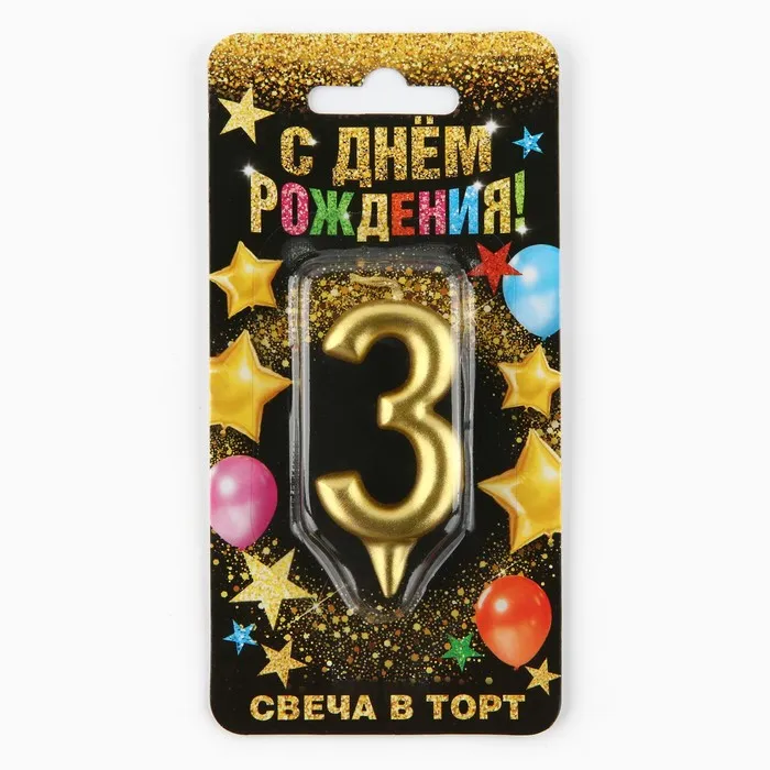 Свеча для торта, цифра «3», золото, 3 х 6 см — Характеристики