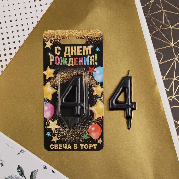 Свеча для торта, цифра «4», чёрная, 3 х 6 см